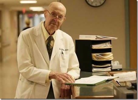 A sus 99 años, el Dr. Acebedo ha sido felicitado por la reina. Una foto del lugar de trabajo del doctor.