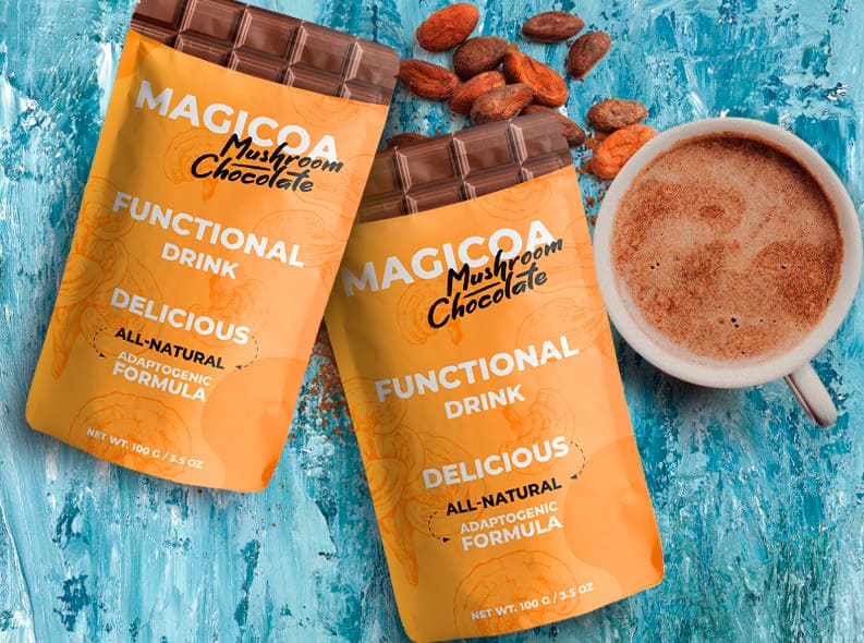 Magicoa , es una bebida a base de granos de cacao y setas Reishi. También contiene ingredientes adicionales que multiplican por diez la efectividad quemagrasas al acelerar el metabolismo de las grasas y los carbohidratos y favorecer la desintoxicación del hígado y los riñones.